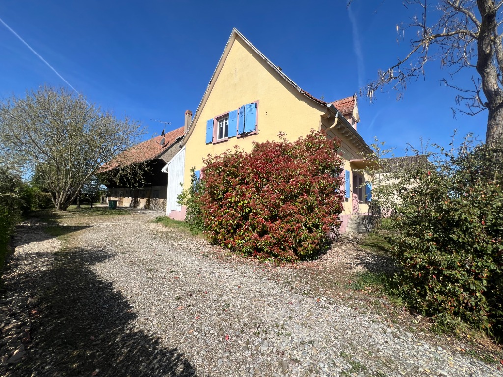 A VENDRE en Exclusivité à Hettenschlag, Maison 9 pièces de 171 m² sur 3 niveaux, composée au rez-de-chaussée: d'une entrée véranda, une cuisine équipée ouverte sur un grand coin repas , un salon séjour, un bureau, une salle d'eau avec toilette. A l'étage: 3 chambres, un dressing et une salle de bain avec baignoire, double vasque et un toilette. Au 2ème étage : 2 chambres, une mezzanine et un toilette avec un lave-mains. Le sous-sol carrelé d'une superficie d'environ 60 m² se compose de 2 pièces, une buanderie et une chaufferie. Sur le terrain de 1476m² entièrement clôturé et arboré, une grange de 200 m² environ par niveau sur 2 niveaux,idéal pour un artisan.